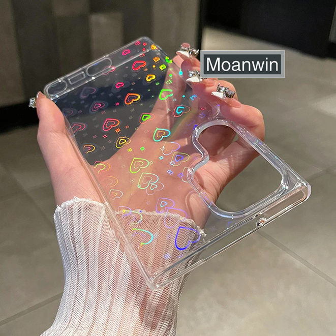 Luxo Laser Heart Lovecapa Transparente Para Samsung Galaxy S24 S23 S22 Ultra Plus S23 FE A15 A25 A35 A55 A14 A34 A54 A53