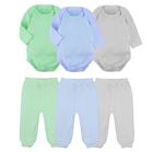 Kit 6 peças Conjunto Body Manga Longa e Mijão Liso Canelado Bebê Menino e Menina
