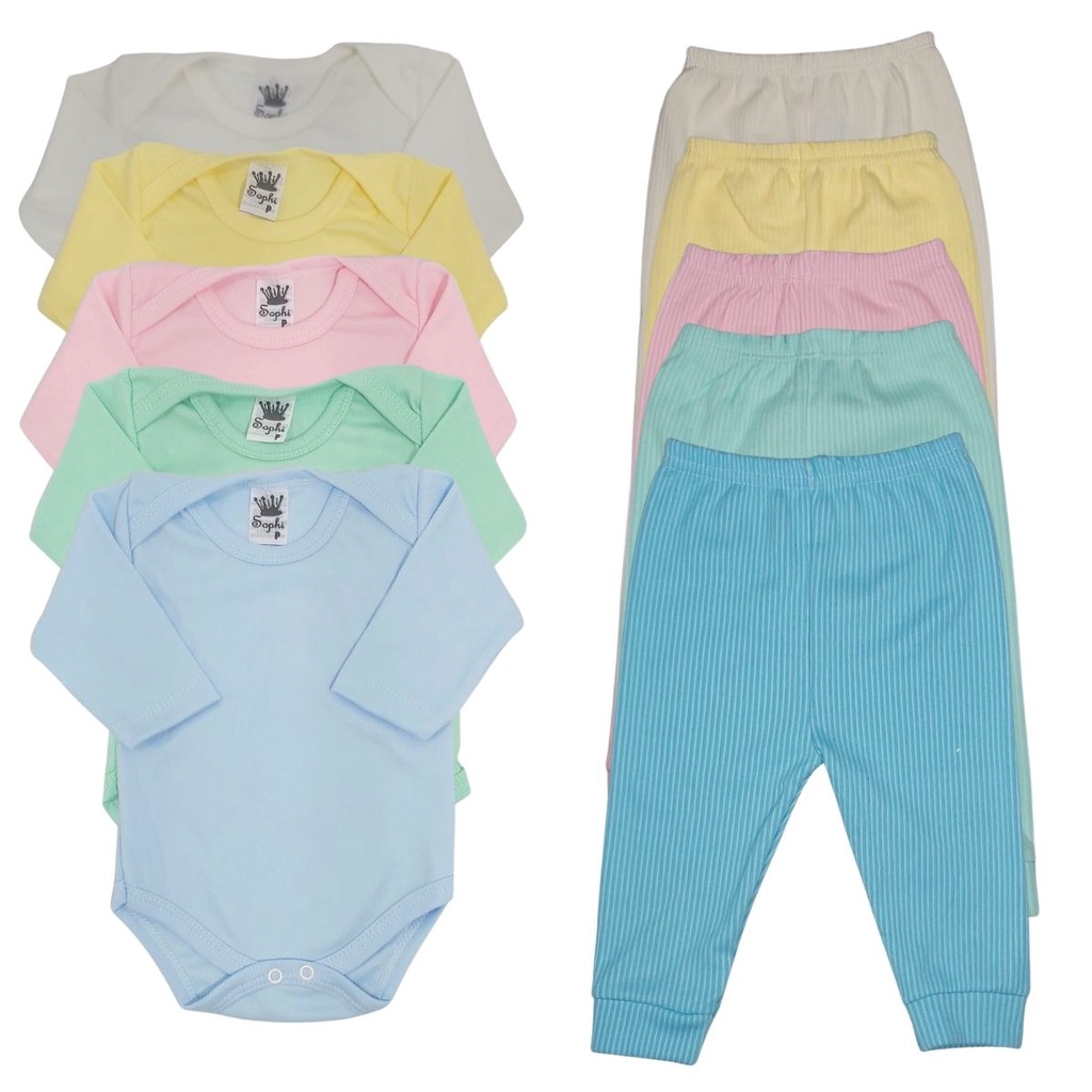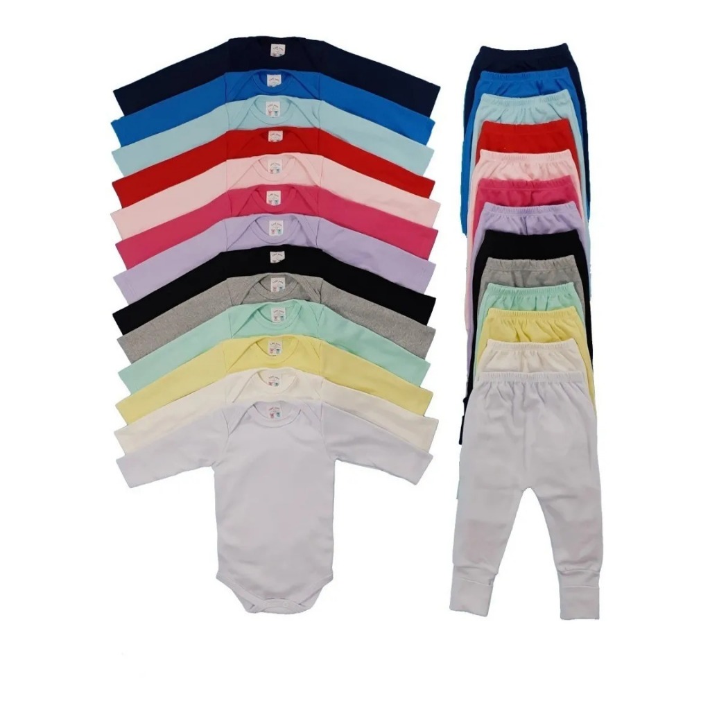 Kit 10 Peças - Conjunto Body Manga Longa + Mijão Liso Infantil Bebê Menino e Menina