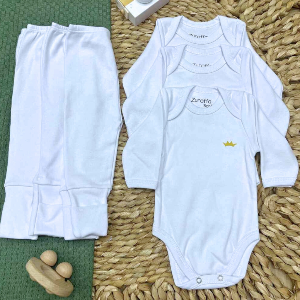 Kit 6 peças Body Manga Longa e Mijão Vira-Pé | Conjunto Body e Mijão para Bebê | RN, P, M e G