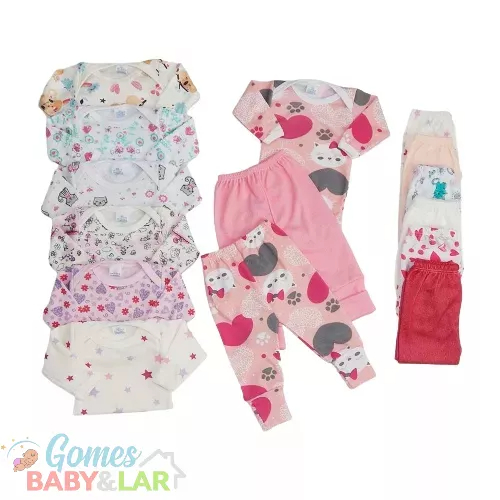 Kit 6 Peças Roupa De Bebê Body Manga Longa E Mijão Menino/Menina