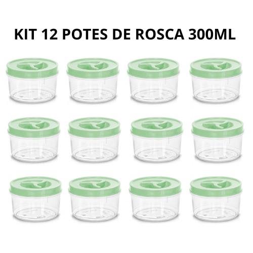 Kit 12 Potes Redondo Tampa Com Rosca 300ml Transparente Cores Sortidas 2573