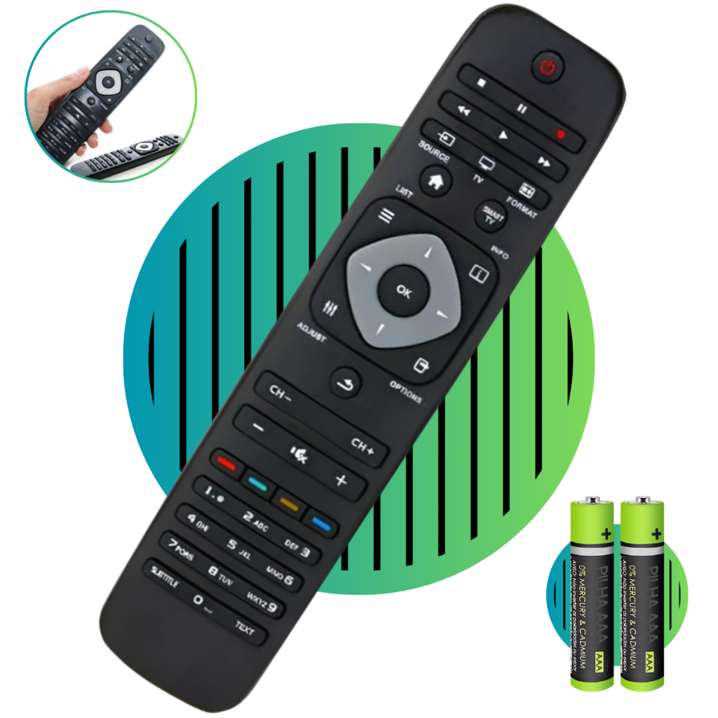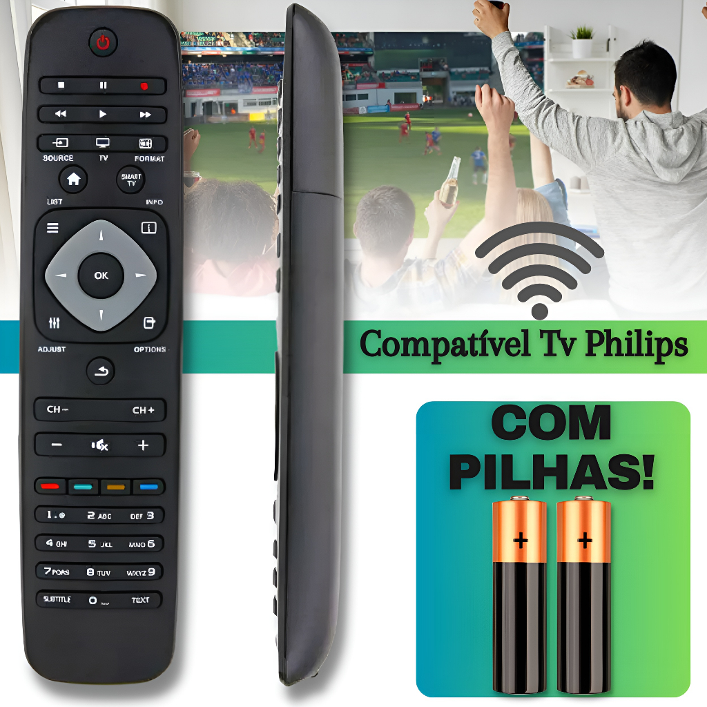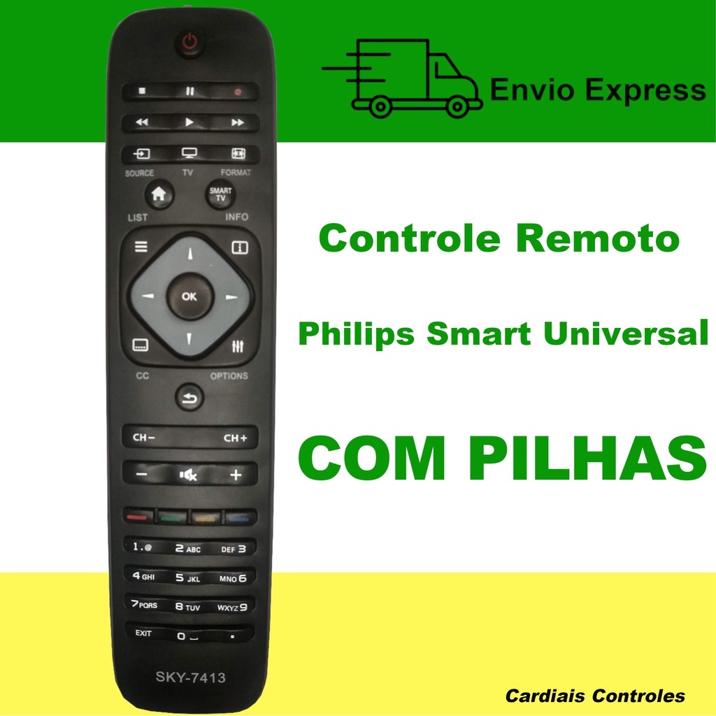 Controle Remoto Para Tv Philips Lcd/led/smart/3d Universal Com Pilhas