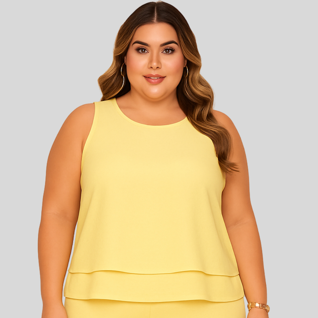 Blusa Feminina Regata Plus Size Alfaiataria Frente Dupla Tecido Molinho Duna Elegante Tendencia