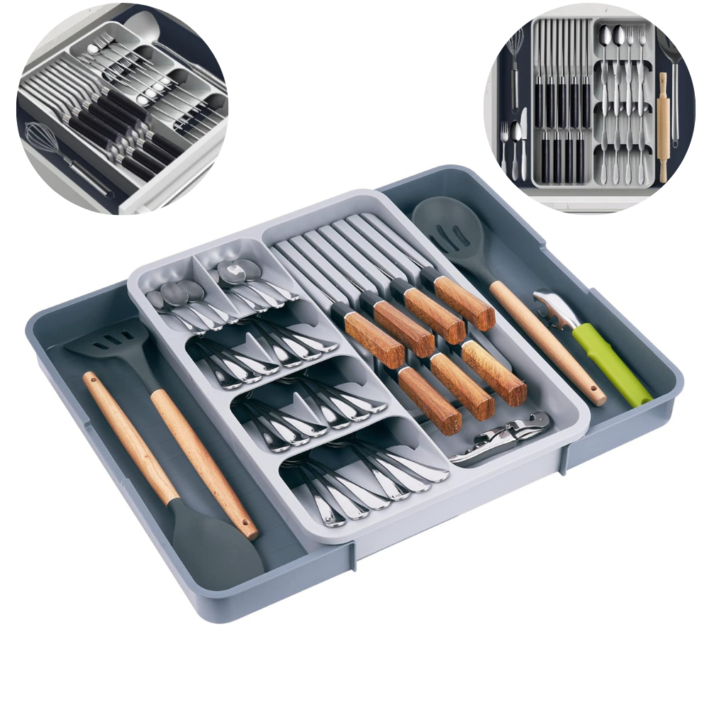 Organizador Talheres Porta Gaveta Para Cozinha Suporte De Bandeja Multiuso Cinza Separador De facas Talher