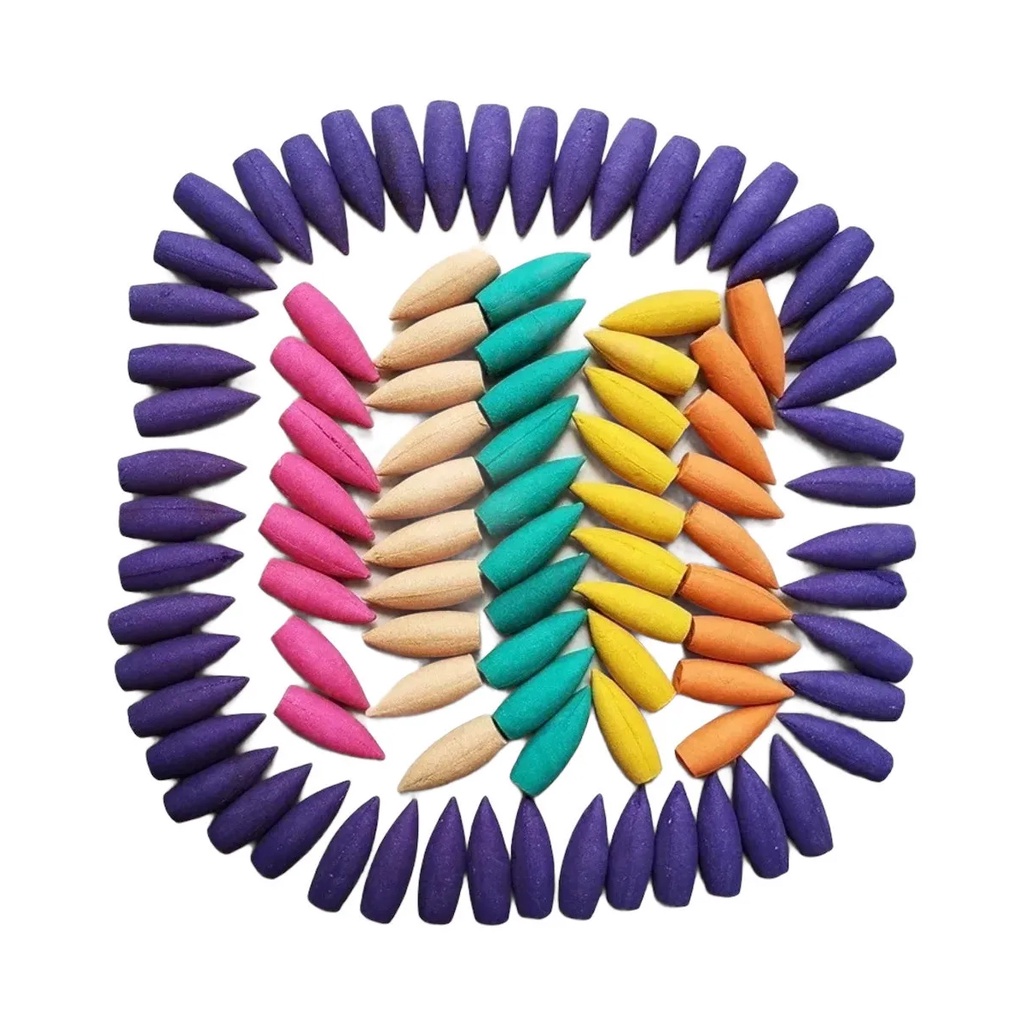Kit incenso cone c 50 unidades para incensário efeito cascata Backflow mix