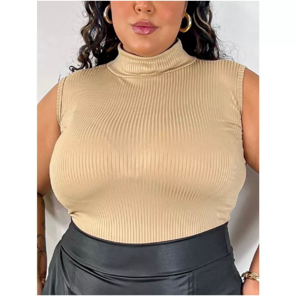 Blusa Regata Canelada Feminina Plus Size Gola Alta Cacharrel