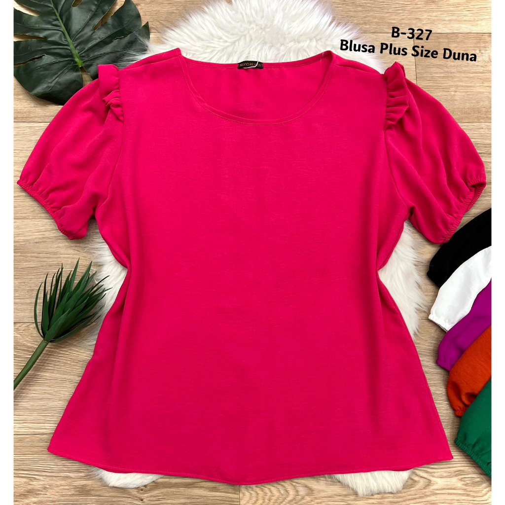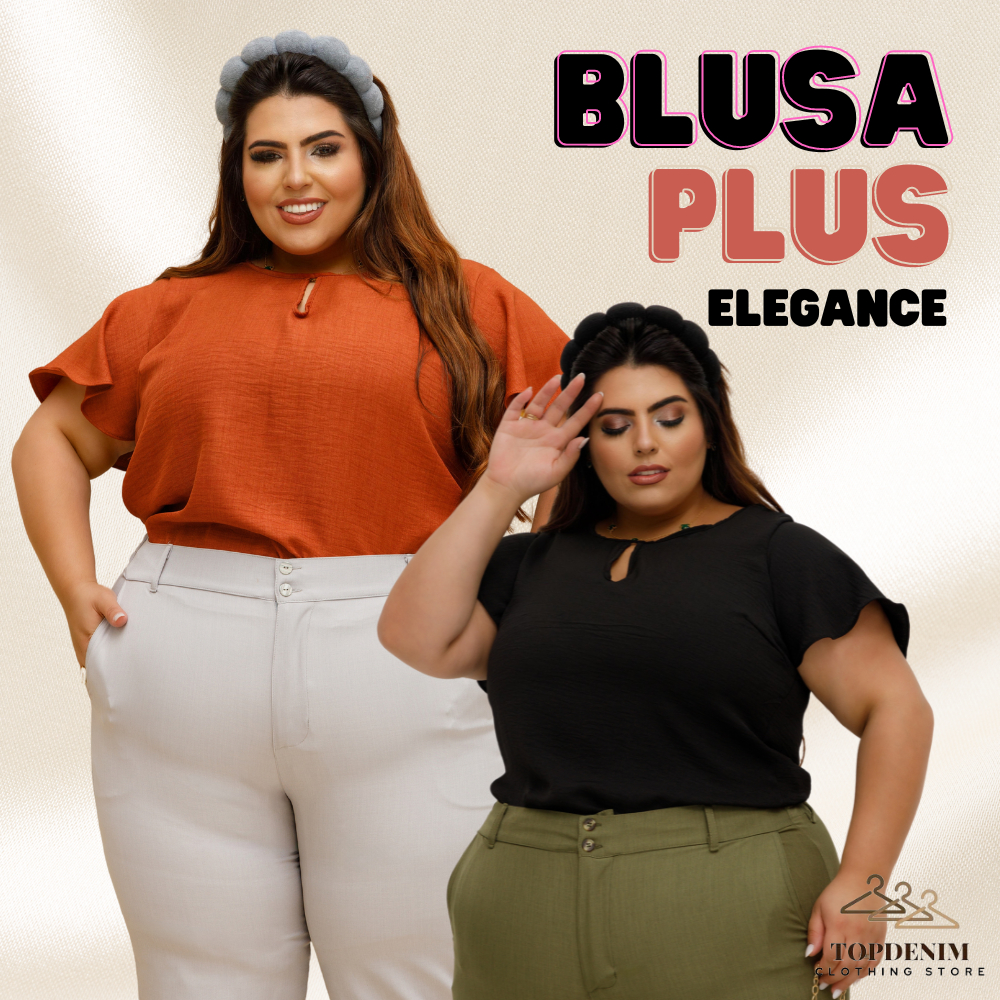 Blusa Feminina Plus Size Manga Curta com Abertura na Gola Manga Godê do G1 ao G5