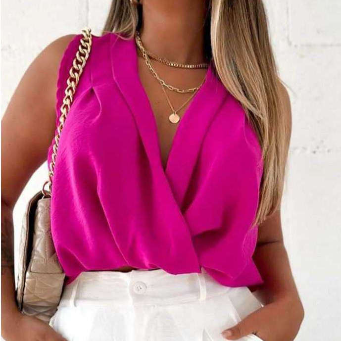 Blusa Feminina Regata tranpassada Tecido Duna decote V moda gringa Promoção Modinha diversas Cores com elástico na cintura