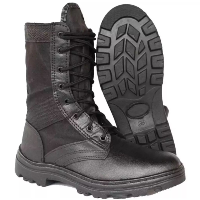 Coturno Bota Militar Masculino Tático De Couro Legitimo Reforçado Costurado Super Leve Macio Com Zíper Ajustável