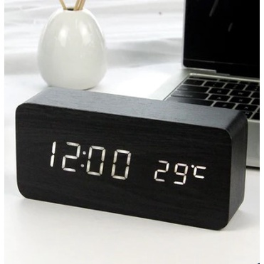 Relógio Despertador de Mesa Digital USB - Madeira com Display de Led - Temperatura - Data - Alarme
