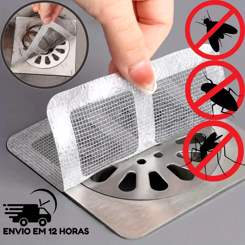 kit 10 Tela Protetora Filtro Adesivo Para Ralo Banheiro Cozinha Quintal Coletor De Cabelo Ant Inseto