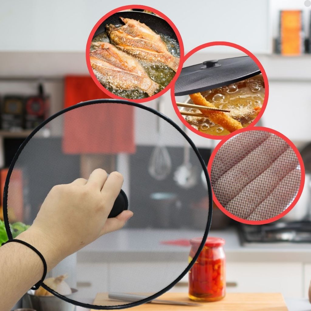 Tela Protetora de Frigideira Anti Espirro com Pegador Tampa Para Frituras 29cm