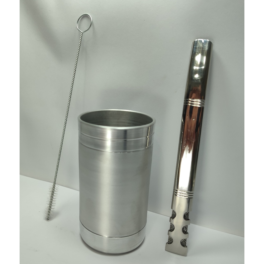 Kit para Tereré: Copo Cuia Redonda De Alumínio Jateado 2MM 300ml + Bomba INOX V6 PREMIUM TELADA POLIDA e Escovinha Limpeza