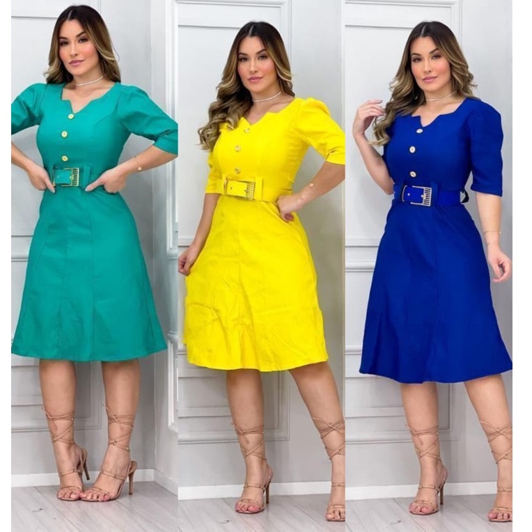 9 SÓ PROMOÇÃO) Vestido Feminino Moda Evangélica Executiva Casual Rodado Mangas 3/4 (REF 21)
