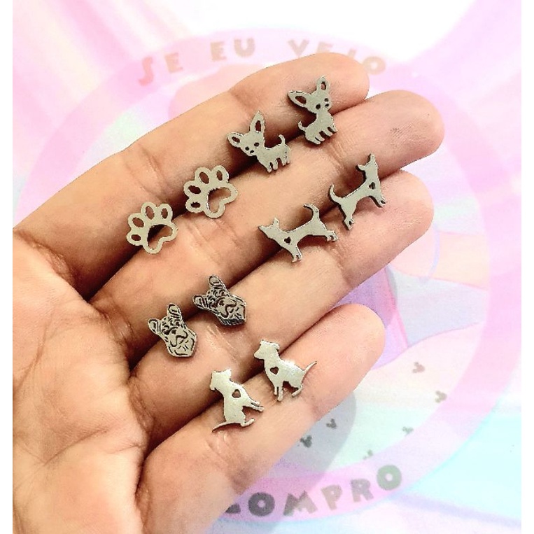 Brinco Cachorro patinha cão aço inox cirúrgico pegada pata dog love pet cachorrinho