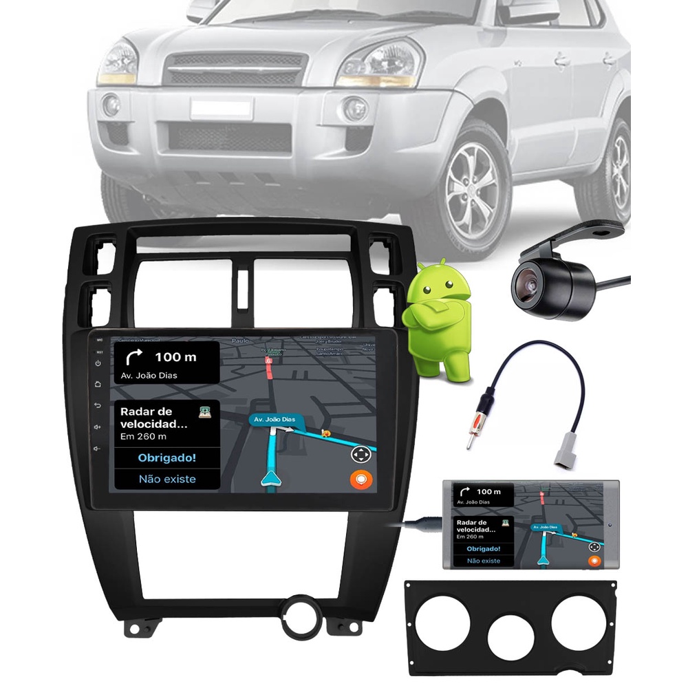 Multimídia 10" Polegadas Hyundai Tucson 2007 até 2011 Android Bluetooth Espelhamento + Câmera de Ré + Moldura + Adaptador de Antena