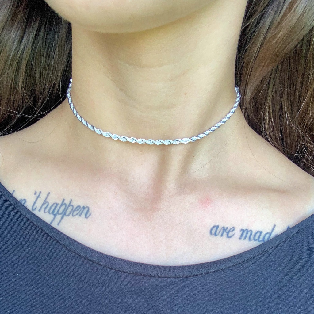 cordão Baiano Trançado prata 925 Colar torcido choker peça original
