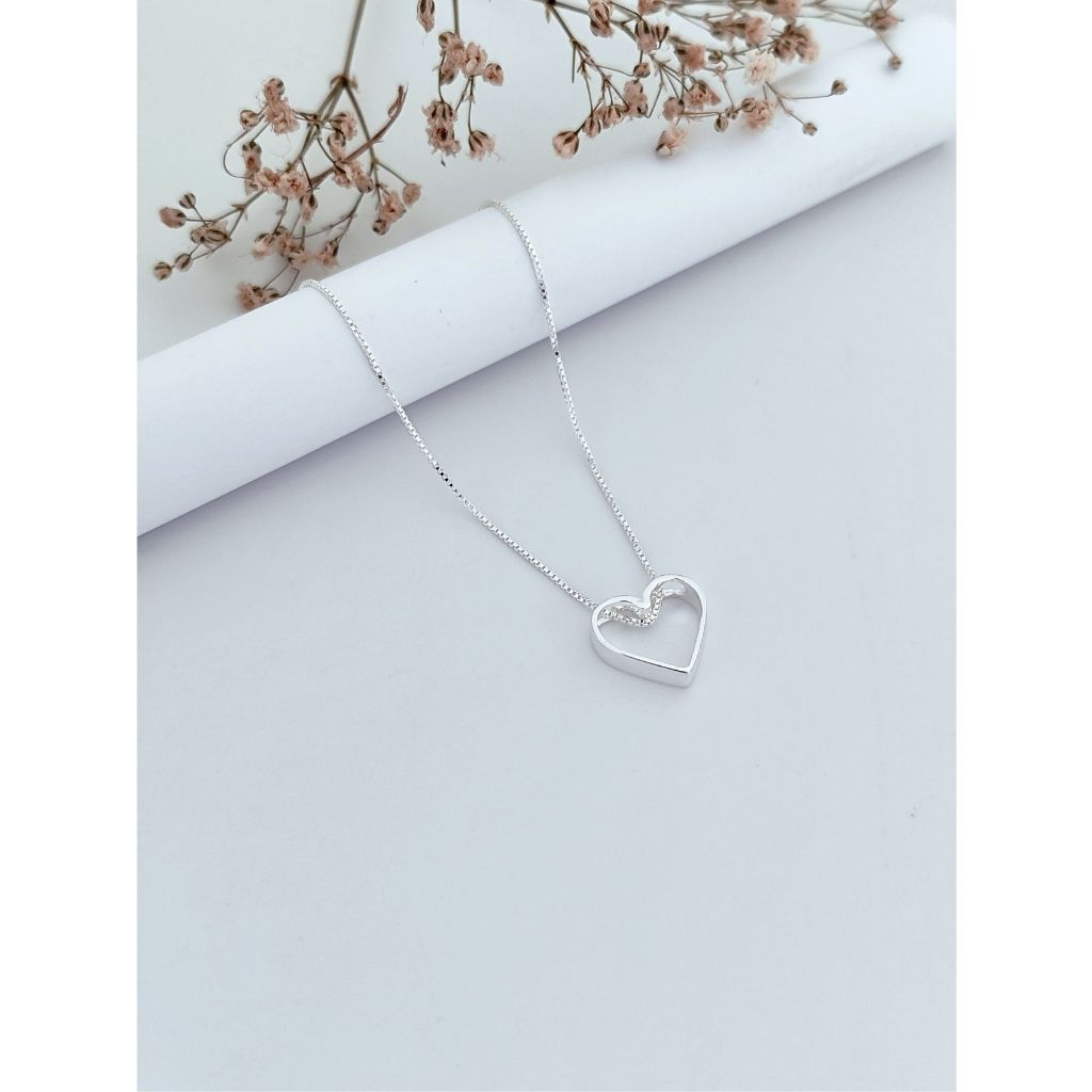 Colar Prata 925 Original Coração Vazado - 12mm