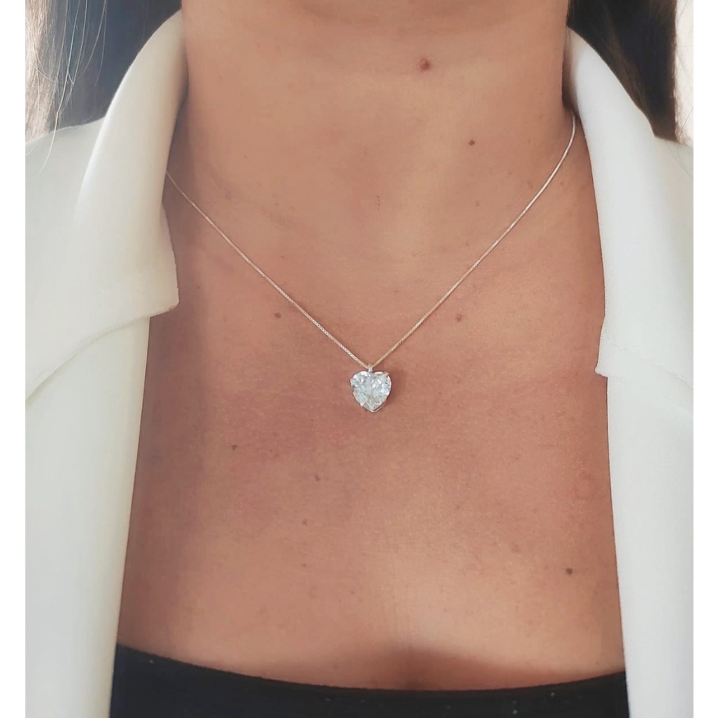 Colar Veneziana Ponto De Luz Branco Coração Prata 925 50cm