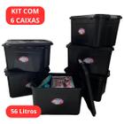 Kit 6 Caixas Organizadoras C/ Tampa e Trava 56 Litros Preta
