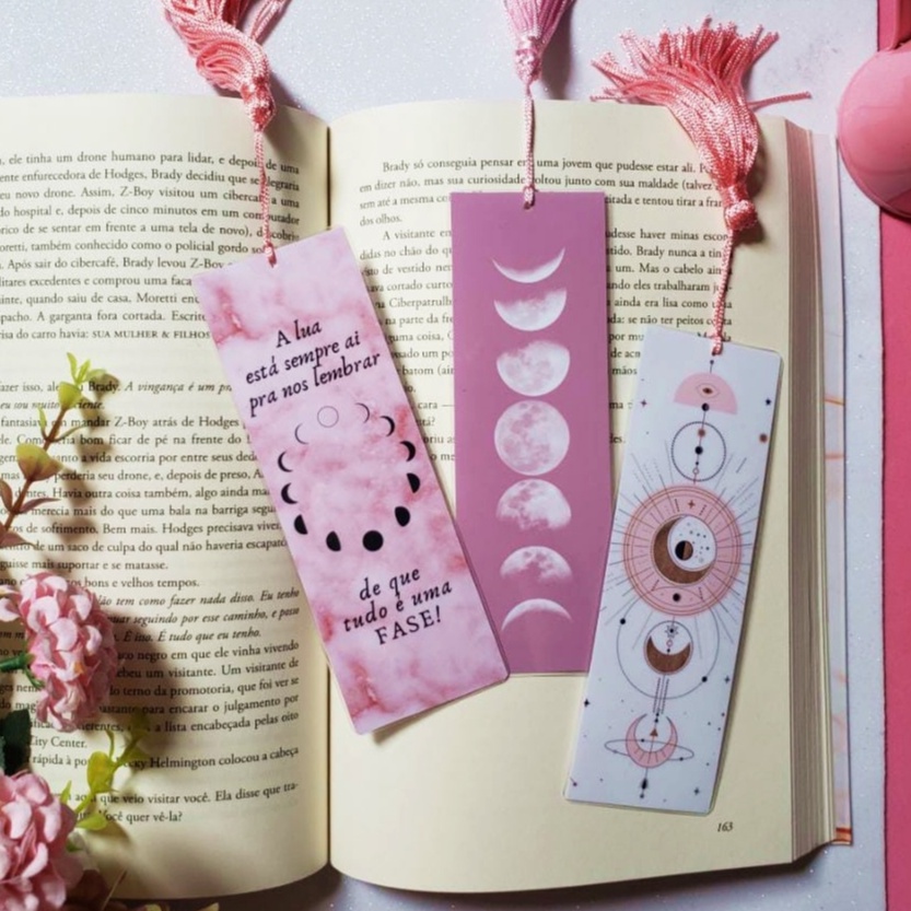 Marcador de páginas Luas Planetas Galáxia Estrelas Cosmos Lua Com tassel Plastificado