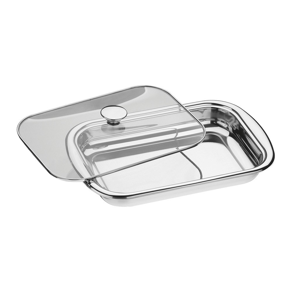 Assadeira Tramontina Cosmos Retangular 61315434 Inox com Tampa de Vidro