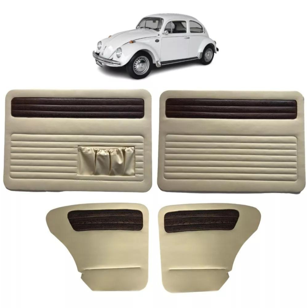 Forro De Porta Fusca Até 1977 Courvim Bege C/jacarandá 4pçs