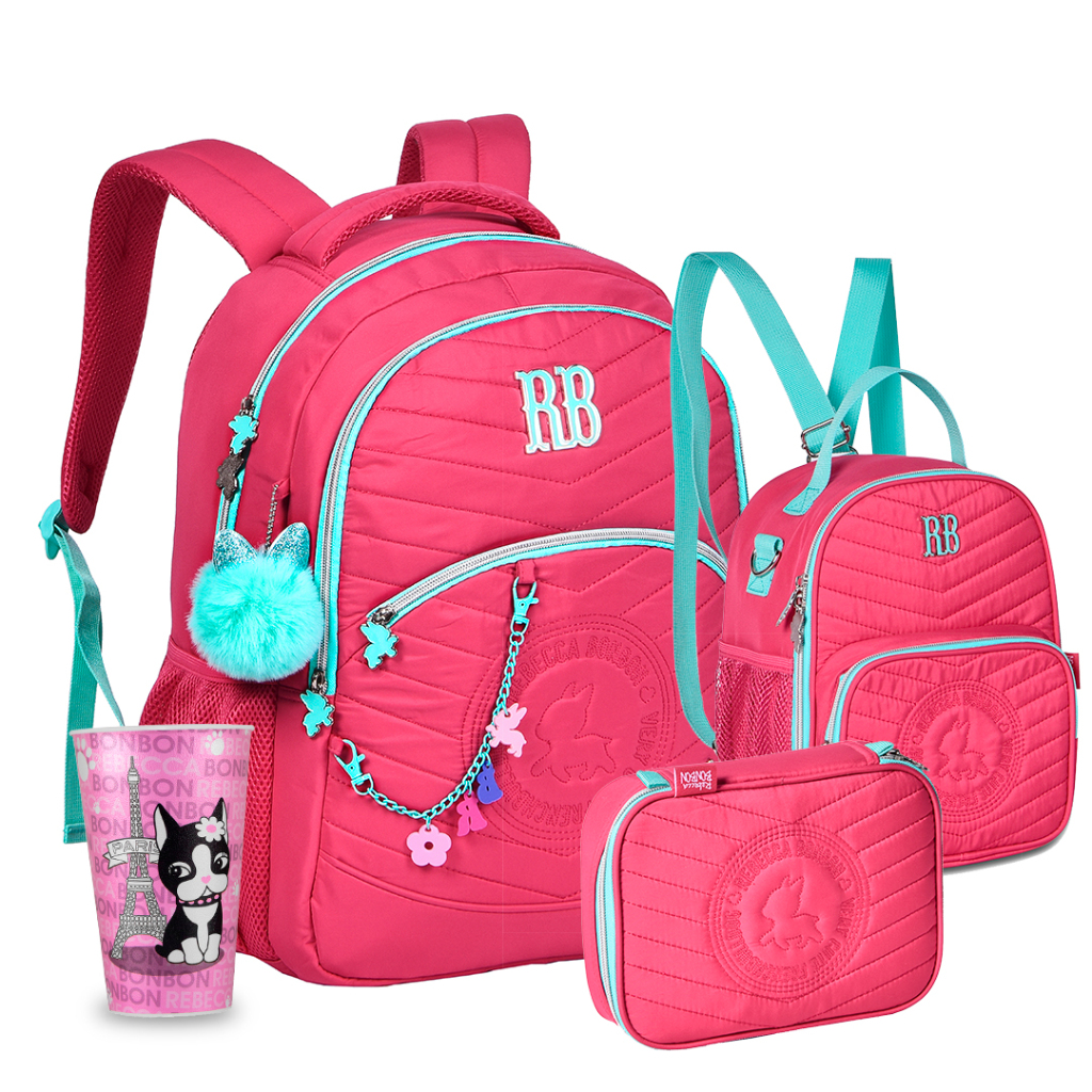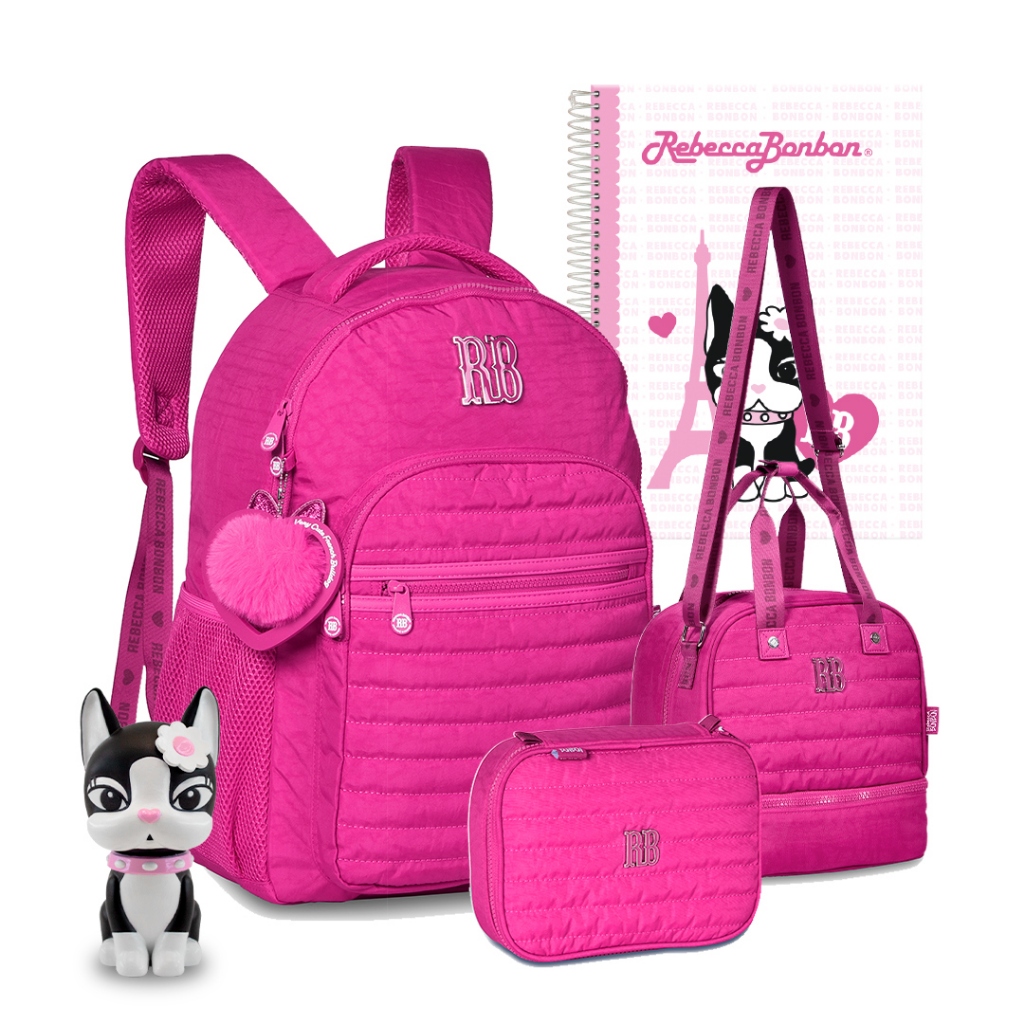 Kit Mochila RB Rebecca Bonbon Escolar Feminina Lancheira e Estojo