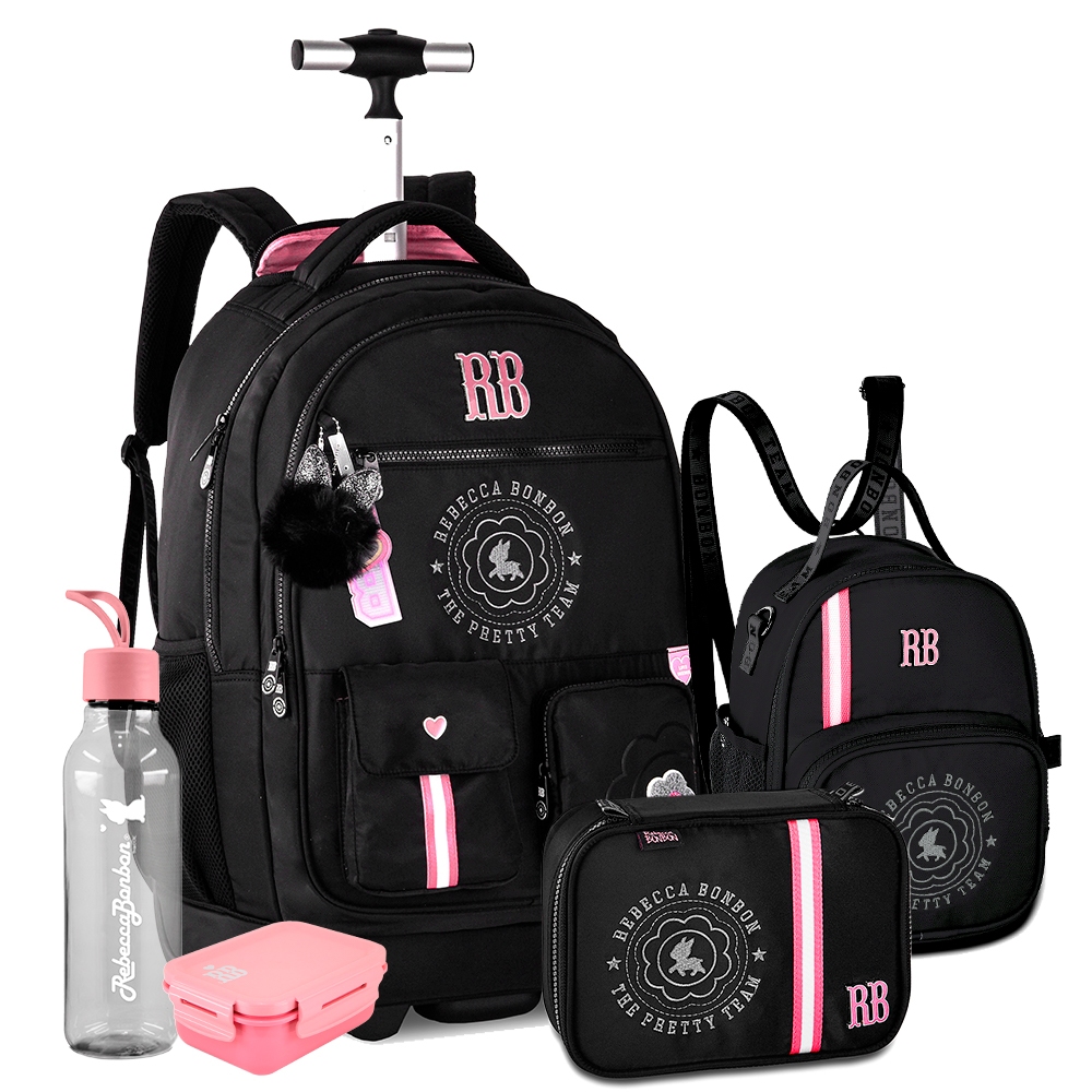 Kit Mochila Rodinhas Estojo Lancheira Rebecca Bonbon RB Oficial Coleção 2025 Squeeze Marmita Fofa