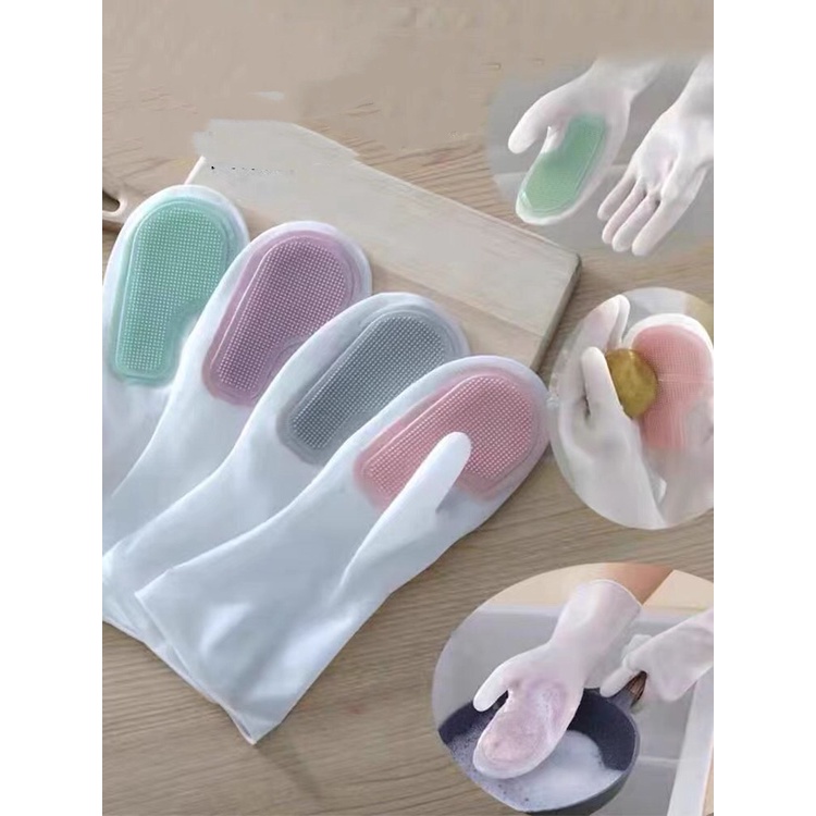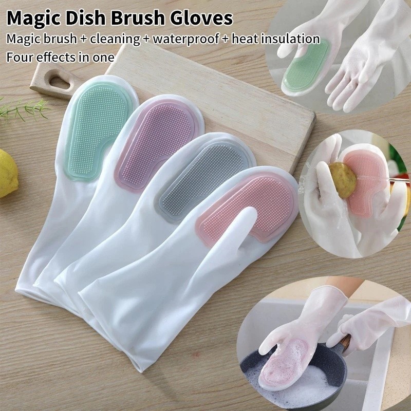 Luva De Silicone Para Lavar Louças Pratos Com Esponja Mágica