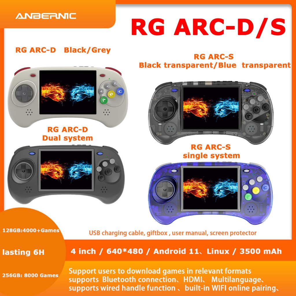 ANBERNIC RG ARC-D S Console De Jogo Portátil Seis Botões Projeto 4 " IPS Linux & Android OS Retro Video Players Suporte Cabo Com Fio