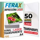 50 Vinil Adesivo Transparente 100% A4 - Para Impressora Laser