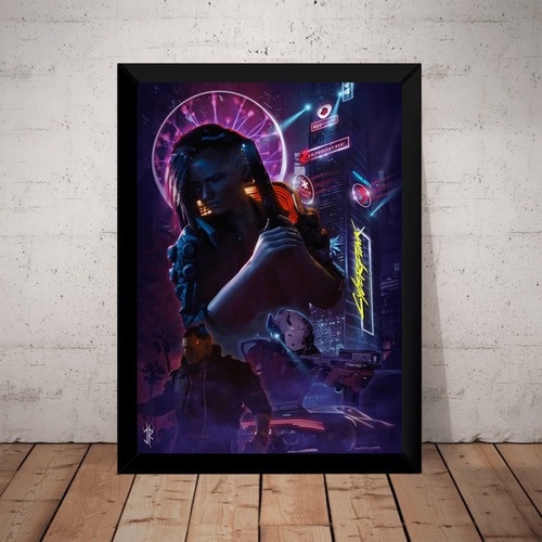 Quadro Cyberpunk 2077 Ilustracion Fan Arte 32x24 Cm Com Moldura Decoração da Casa Quarto