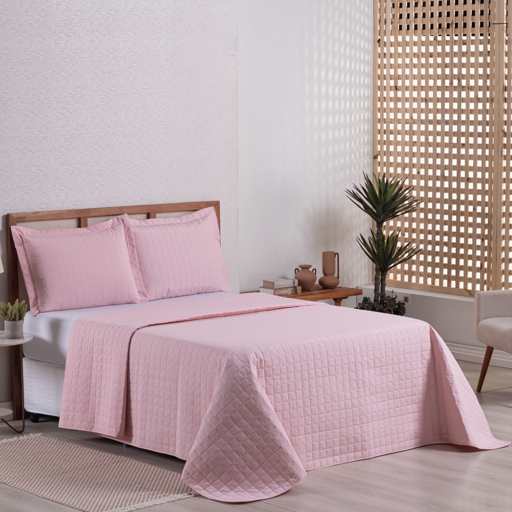 Kit Cobre Leito Colcha Queen 3 pecas Dupla Face Micro Percal 150 Fios Matelado Pastilhas