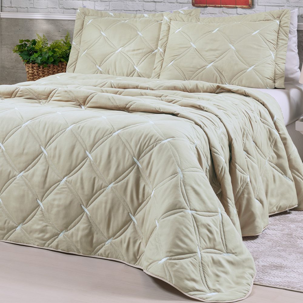 Kit Cobre Leito Colcha Luxo Queen 3 Peças Unique Percal 200 Fios