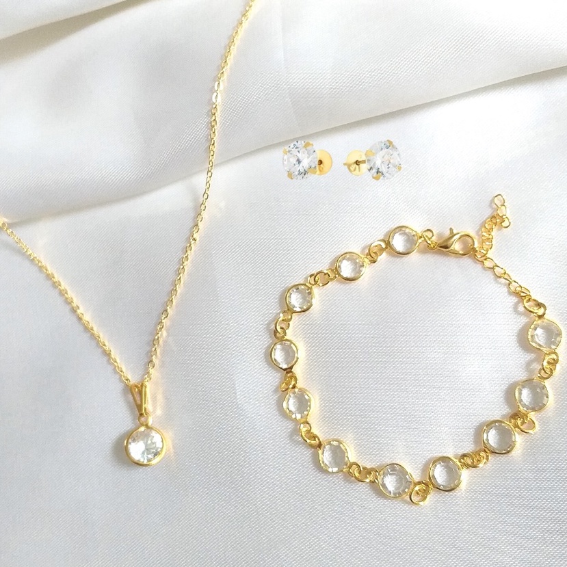 Kit Conjunto Colar + Pulseira+ Brinco Ponto de Luz Banhado à Ouro 18k Folheado