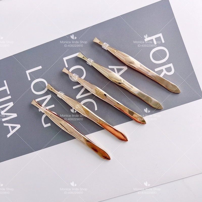 kit 5 Pinça Sobrancelha Aço Inoxidável Banhado A Ouro
