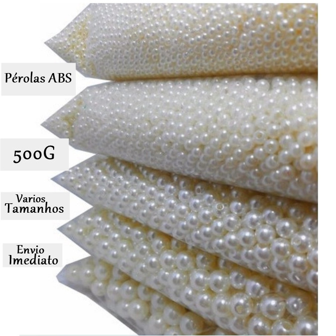 Perola Branca ABS 6mm 8mm 10mm Inteira Pacote 500gr C/Furo Não descasca /MENOR PREÇO/ Artesanato Customização