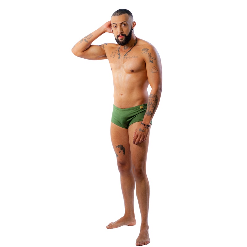Sunga de banho masculina verde militar lateral média com viés Fashion Power MRM2