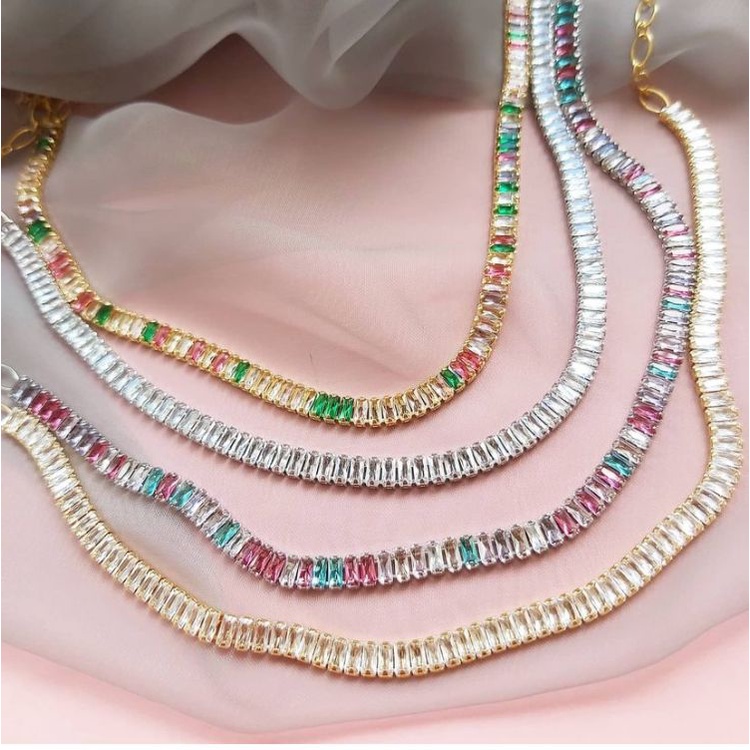 Colar Zirconias Semijoias Choker Moda Pedras Riviera Gargantilha Ouro Prata 925