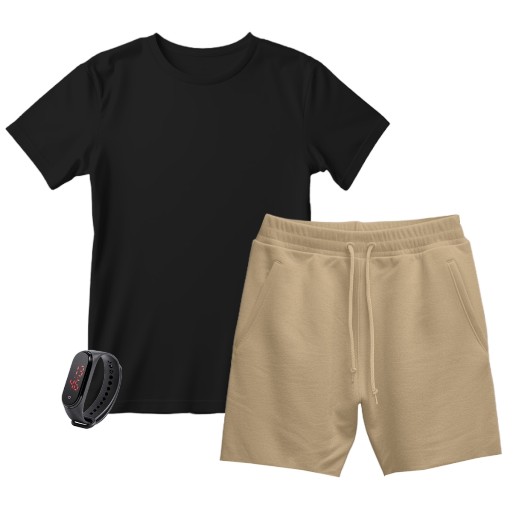 Kit Camiseta Algodão e Short Tactel Masculino promoção