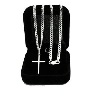 Kit 2 Corrente e Pulseira Torcido Cordão Banhado Prata com colares masculinos com pingente Pingente de Cruz Aço inoxidável 316L