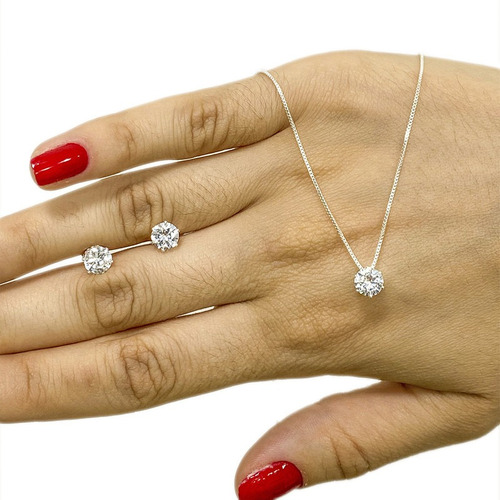 Kit Colar Corrente E Brinco Ponto De Luz Banhado Prata 925