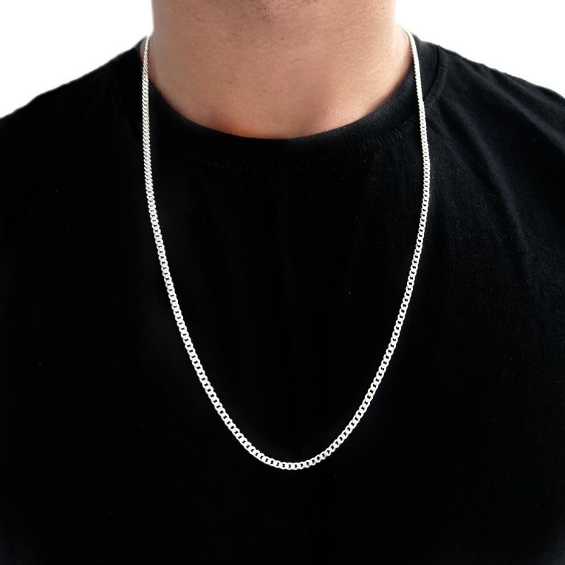Corrente Colar Masculino Grumet 2,5mm Prata Cordão Banhado A Prata 925