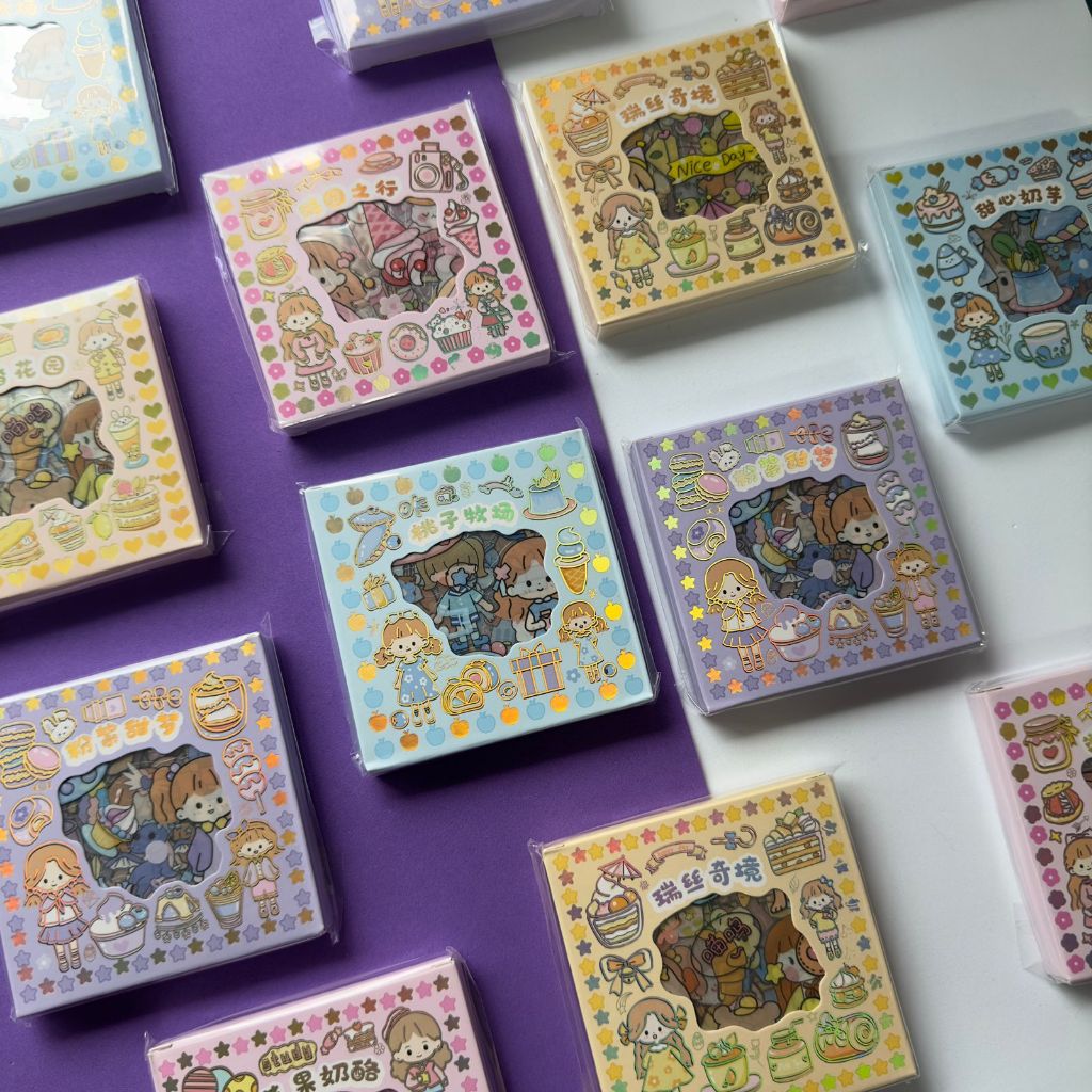 Caixinha com 100 cartelas de adesivos decorativos transparentes - resistente à água - Tamanho 8x8 - Papelaria Fofa - Kawaii