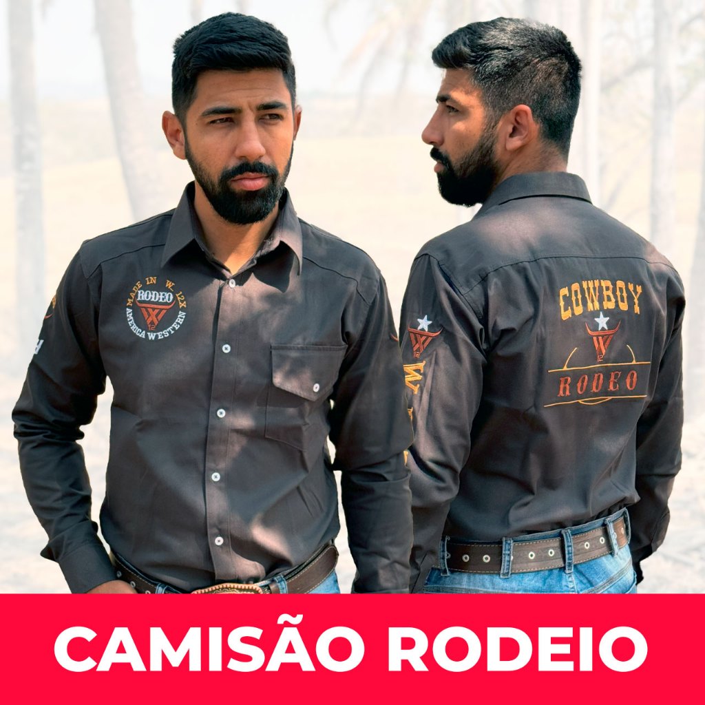 Camisão Rodeio Country W-12X Masculina - Bordada, 100% Algodão, Estilo e Resistência - Cinza