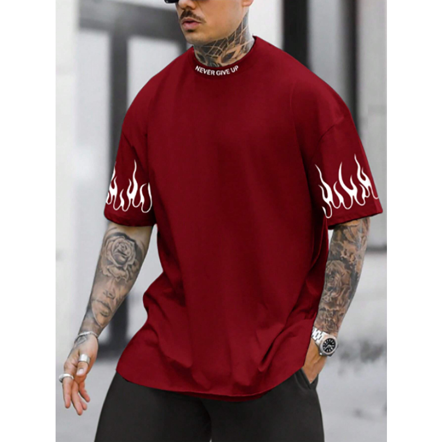Camiseta Camisão Algodão Oversized Fogo Mangas Streetwear Moda Masculina