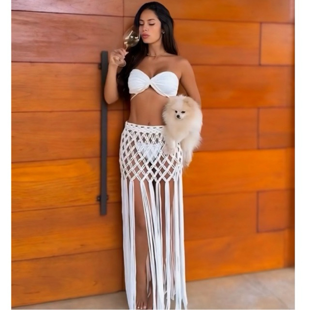 Saia Feminina Macramê Artesanal Crochê Saída de Praia Franjas