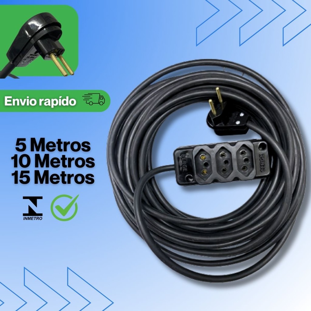 Extensão com Cabo Grosso PP 5,10,15 Metros Prolongadora 10A e 20A Elétrica 2x2.5MM Reforçada